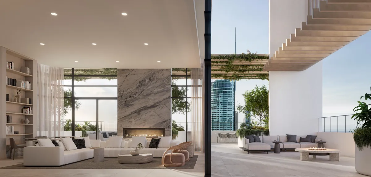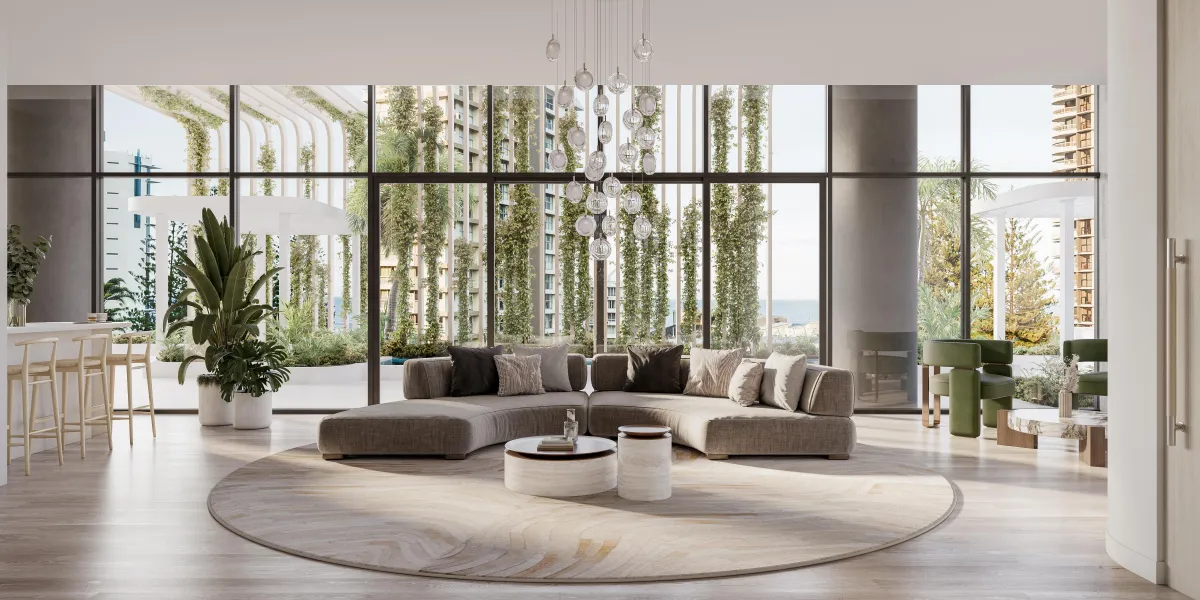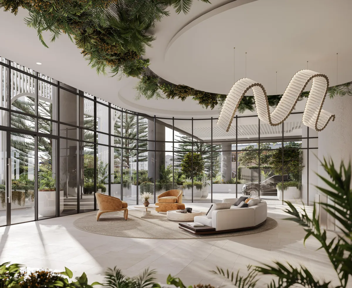 The functional space and seating area that provides comfortable and convenient environment where residents can wait for visitors or to relax and socialize.